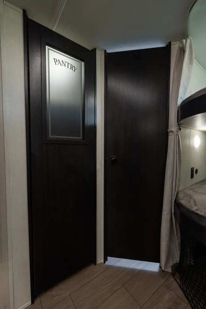 Looking for a lightweight and affordable option for your family? The Alpha Wolf 26DBH by Forest River may be the perfect fit with a smartly designed bunkhouse floorplan. Featured in the rear are double stacked bunk beds and a full bathroom with an entry/exit door. The kitchen is well equipped with a full-size pantry, 12-volt refrigerator, farm style sink, oven and a microwave. The-U-shape dinette and living room sofa both double as extra sleeping when not in use. Up front is a queen size bed.