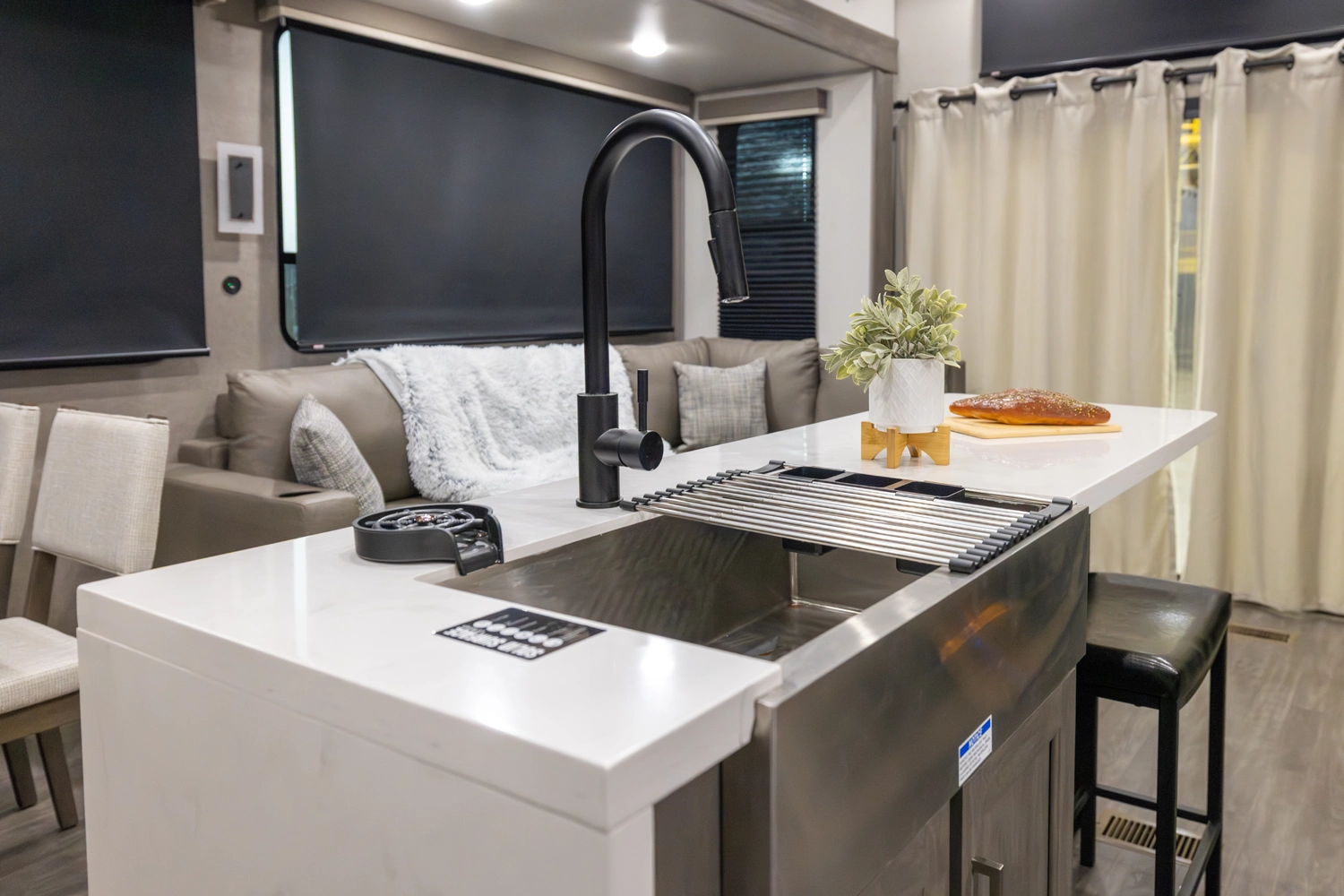 • Solid Surface Countertops Throughout (39FLTS, 40BHTS Kitchen Area Only, Seamless Thermofoil Countertops Outside of Kitchen Area)