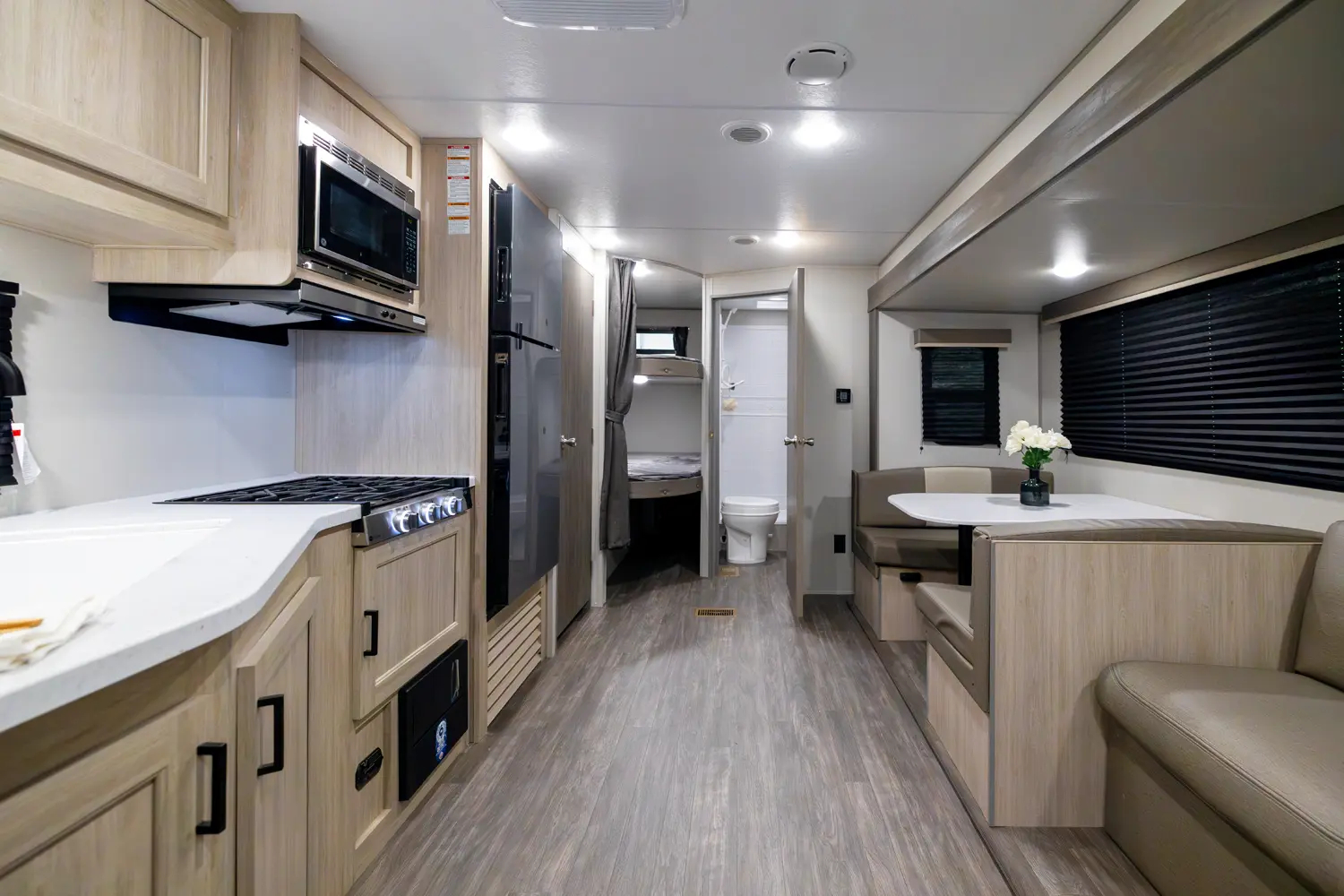 The 26BHS Aurora Light TT offers a spacious layout for families and friends. With multiple sleeping areas and efficient kitchen and bath setups, it makes every trip comfortable. Lightweight and easy to tow, it’s ready for tailgating, weekend camping, or exploring new trails.