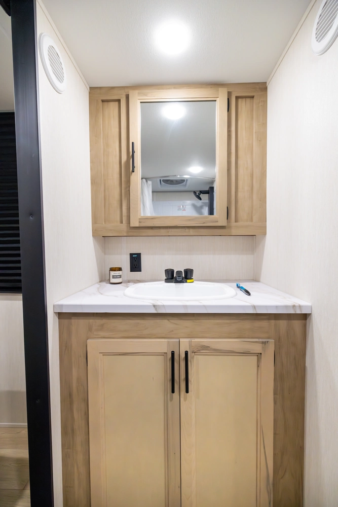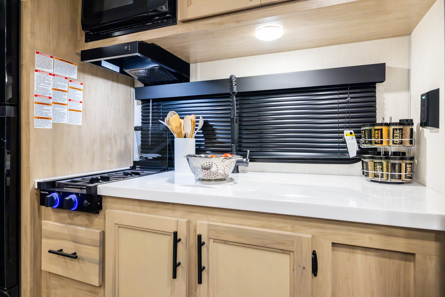 The Wolf Pup 17SCBL makes the most out of a small 23ft 10in space with bar style seating in front of a big campsite window. Also featured is a well-equipped rear kitchen, full bathroom and a separated bedroom with a door.