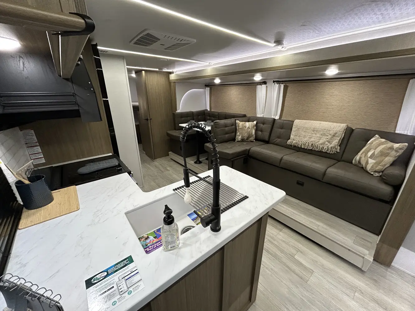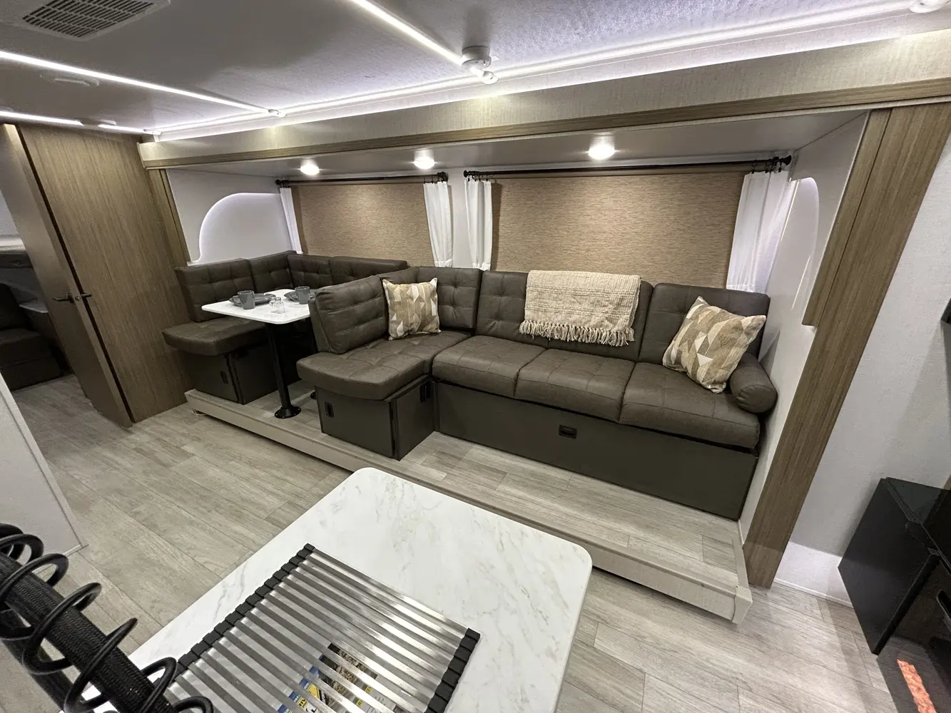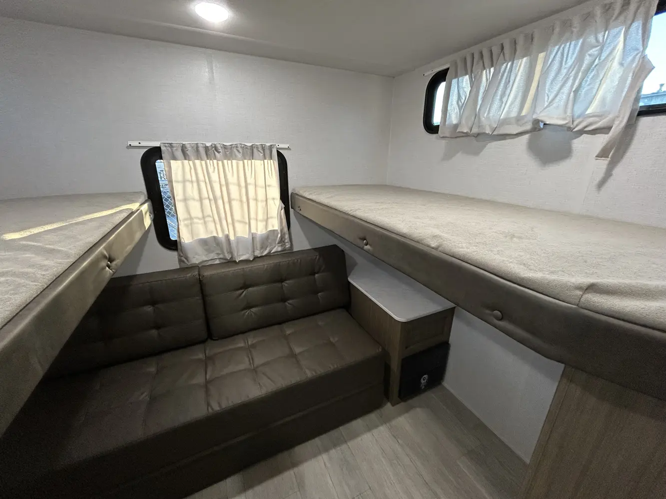 The 28VBXL is new to the lineup and brings an extreme amount of versatility. The rear offers the MOST versatile bunk room. The bunk room features the Versa-Bunks & Versa-Queen. This travel trailer also includes a U-dinette, Versa-Lounge, and walk-in shower. The kitchen includes an oversized 11 CU. FT. refrigerator, stovetop, oven, and pantry.