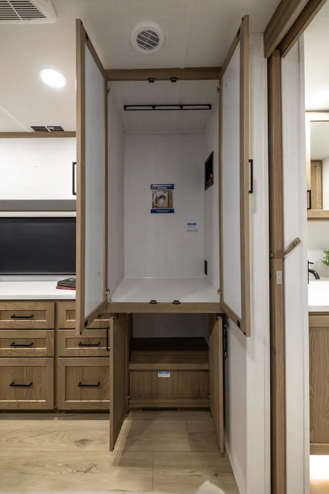 EXQUISITE, EXPANSIVE INTERIORS AS THE NORM. WELCOME TO THE CLASSIC SERIES, REDEFINING THE CAMPING EXPERIENCE THROUGH AN ARRAY OF REMARKABLE FEATURES. With its inviting open floorplans and ample storage capacity, there's room for those cherished guests or family you wish to bring along. As you nestle into the embrace of a plush king or queen sized bed, the restlessness of your adventures fade away. Through its efficient layout and panoramic windows, the classic travel trailers offer you an opportunity to luxuriate in your surroundings, all while enjoying the comfort of your serene interior.
