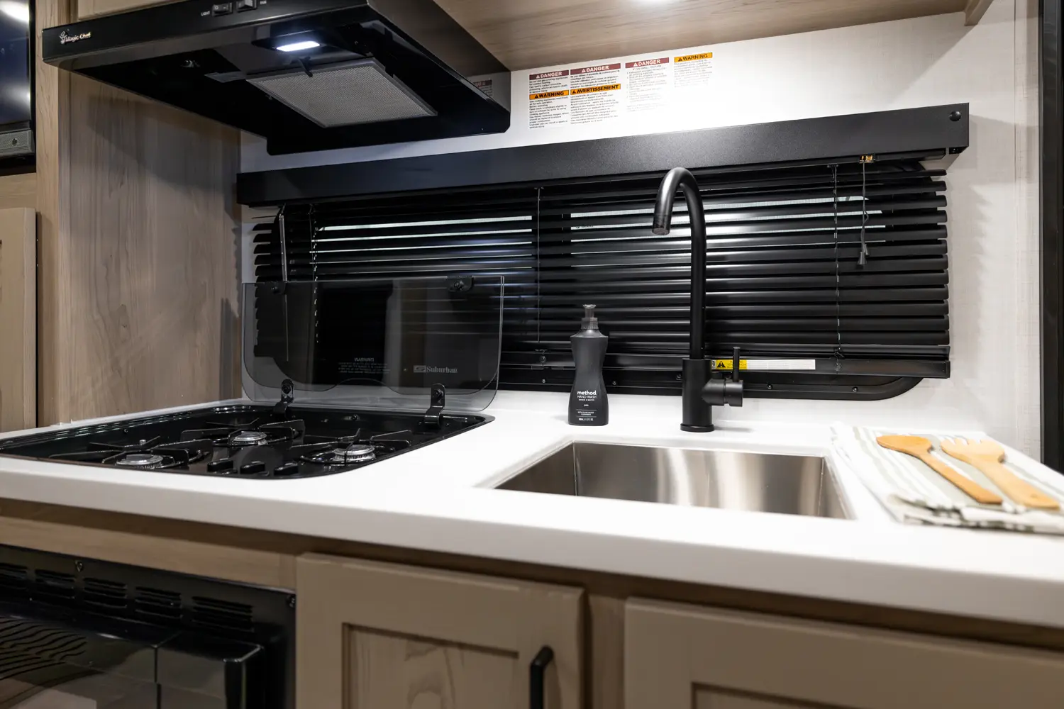 The Flagstaff E-Pro E19FBS is a rear entry couples coach with a small slide that offers so much great space. The large bathroom is one of the best features of this small couples coach. The 72” sofa also makes for a great bed for guests, children or pets. At 20’ and light weight, you will not be able to get more walk around footage than this great couples coach.