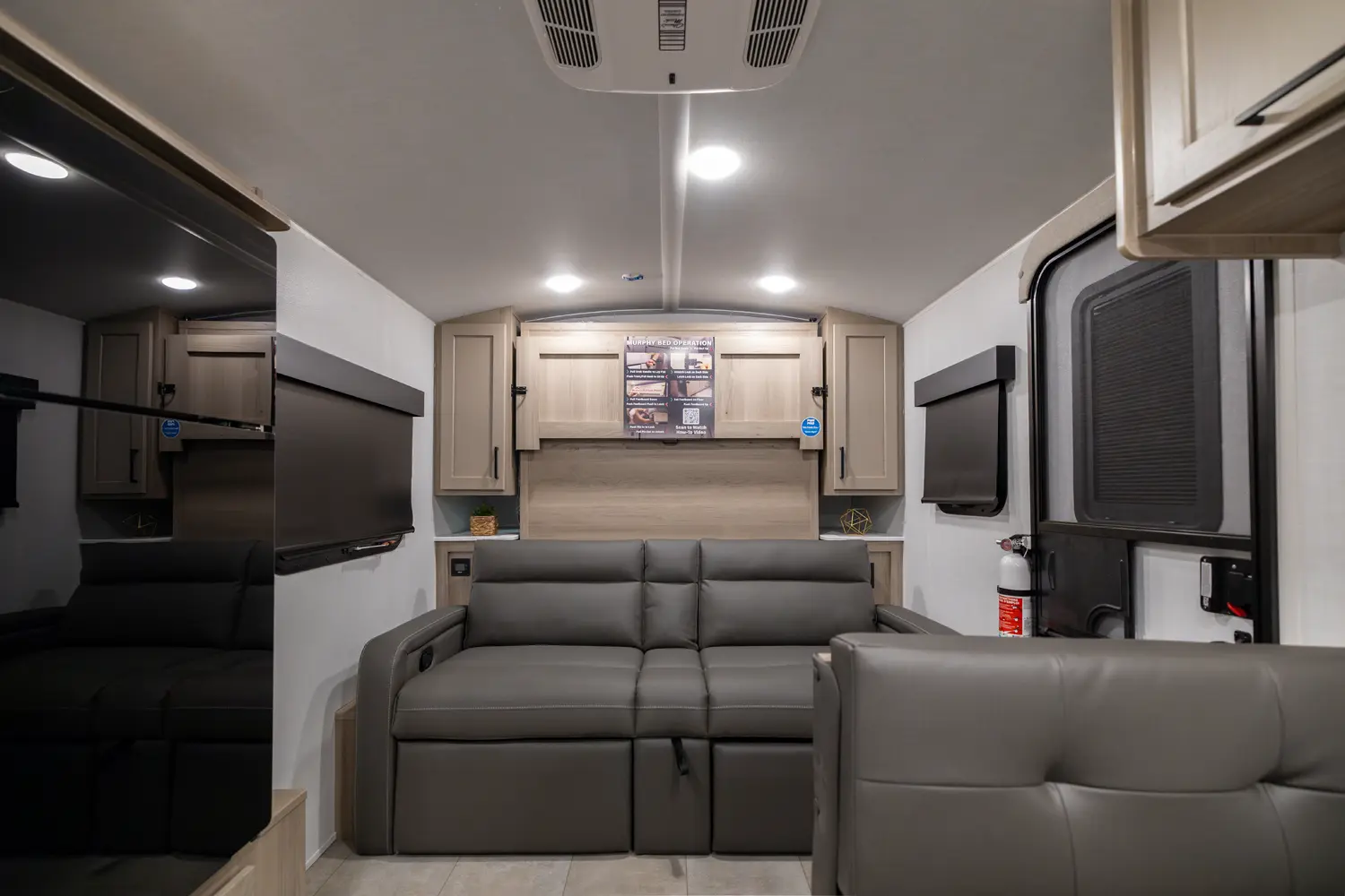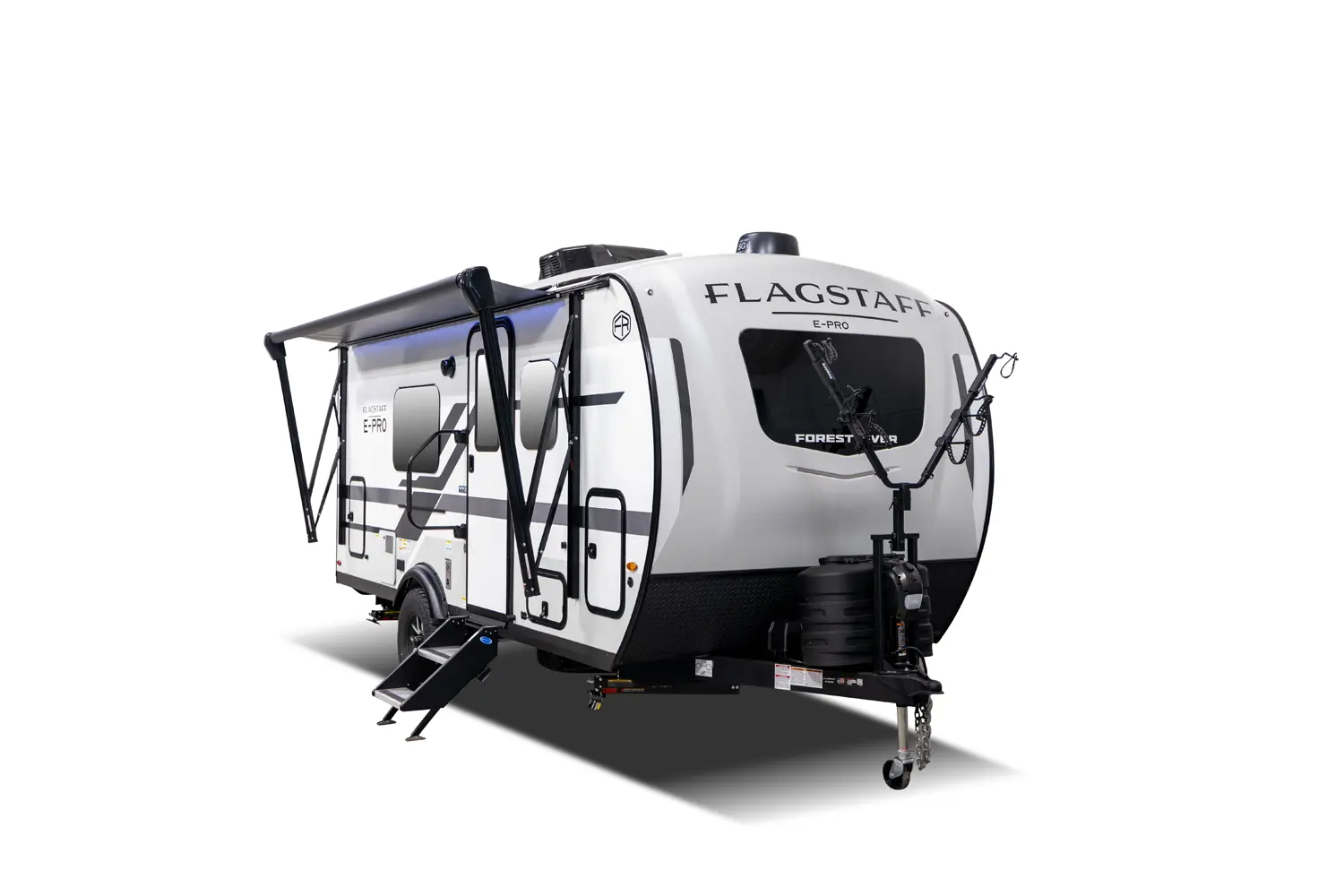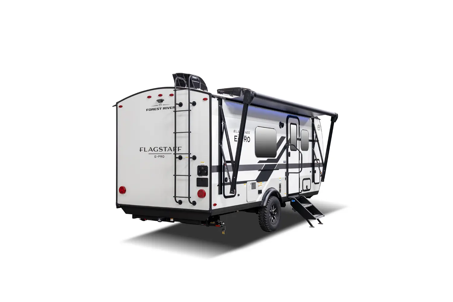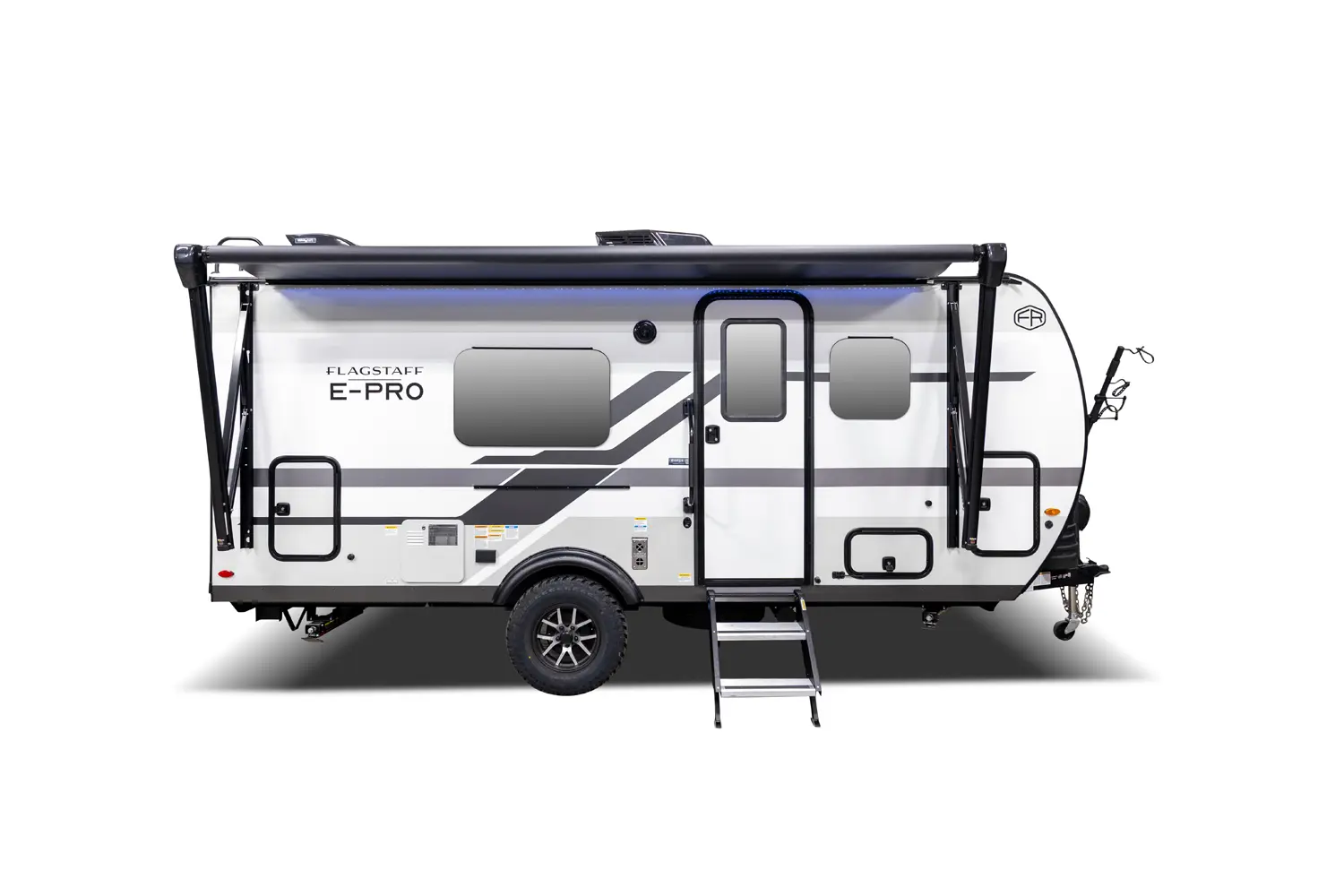 In this Flagstaff E-Pro E19FDS, you will find that the full-length bathroom and large shower in this model is the overwhelming highlight. The Murphy bed and kitchen slide in this 20’ travel trailer makes the living room in this unit so spacious. The door side dinette with a large window, gives this unit a “right at home” feel. This single axle trailer checks so many essential boxes.