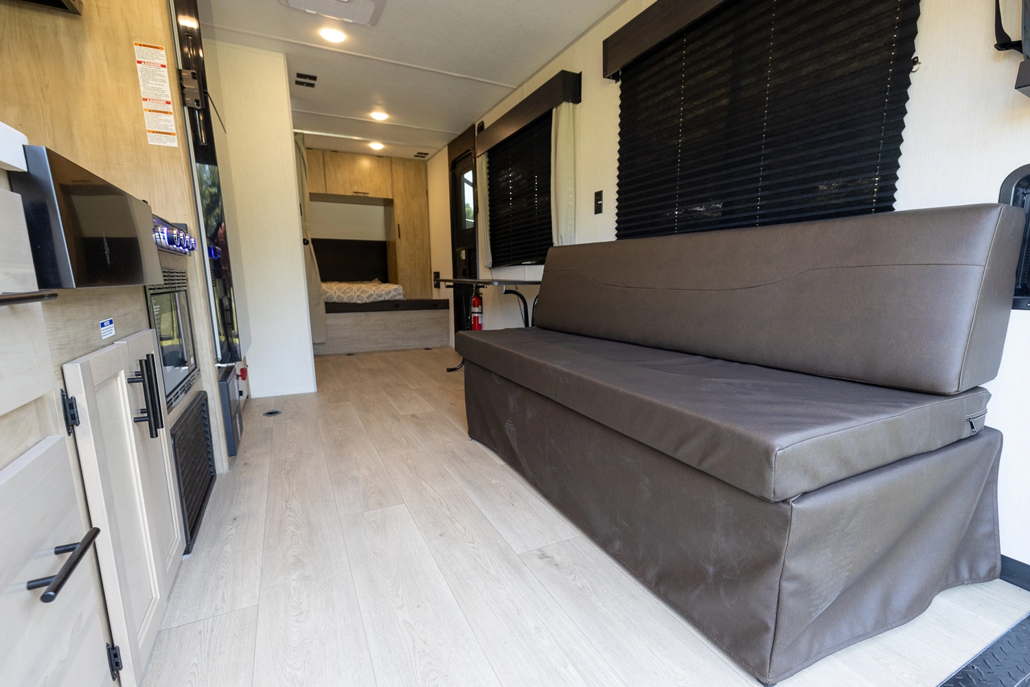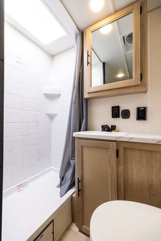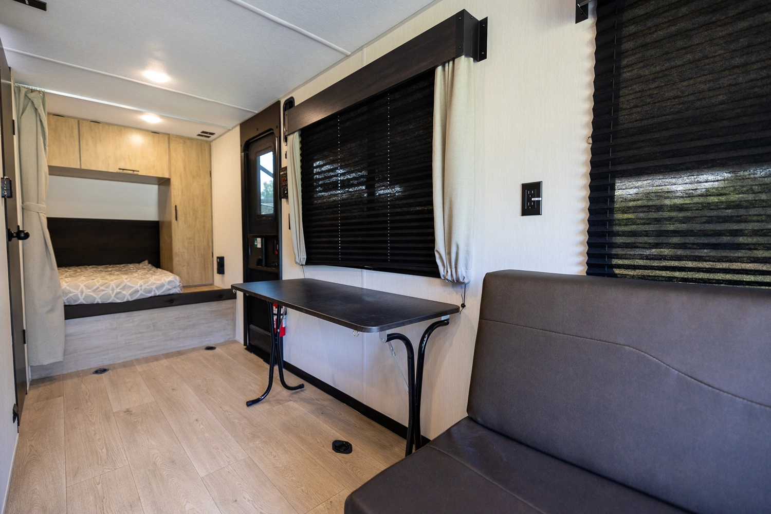 The Wolf Pup 18RJB by Forest River is a versatile travel trailer that offers a unique camping and cargo-hauling experience. The innovative ramp door can be converted into a patio, extending your living space and creating a perfect outdoor entertaining area. The flexible interior layout features a collapsable sofa and removable table, allowing you to maximize the garage space for your toys and gear. With a full-size bathroom, you can enjoy the comfort of home while on the road.
