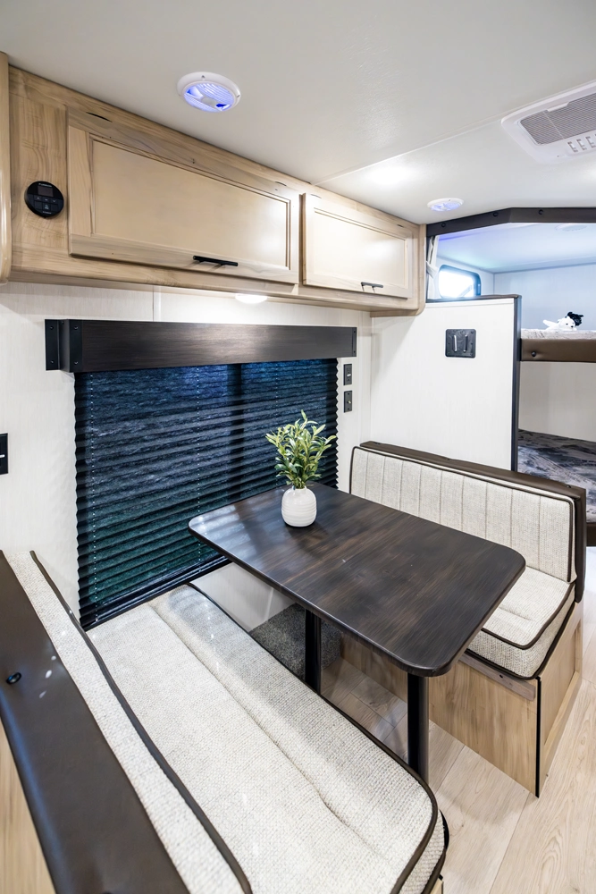 The Grey Wolf 22MKSE by Forest River is a compact and versatile travel trailer, perfect for families. The innovative Cherokee Sleep System bed transforms from a sofa into a queen-size bed, maximizing space and flexibility. The rear bunkhouse provides additional sleeping space for kids or guests. Indoor and outdoor entertainment options, along with modern amenities, make the 22MKSE a comfortable and convenient choice for family adventures.