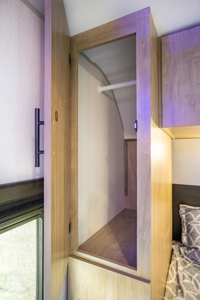 The Cherokee Grey Wolf 27RR by Forest River is a luxurious travel trailer that offers a unique camping experience with a ramp door that doubles as a patio. The private 11-foot toy hauler garage, convertible into a sleeping area, is perfect for storing toys, bikes, or other gear. The outdoor kitchen, complete with a shower, speakers, TV hookup, and a rear ramp-turned-patio, is ideal for outdoor entertaining. The bedroom, with a queen-size bed and a full bathroom, provides a peaceful retreat.
