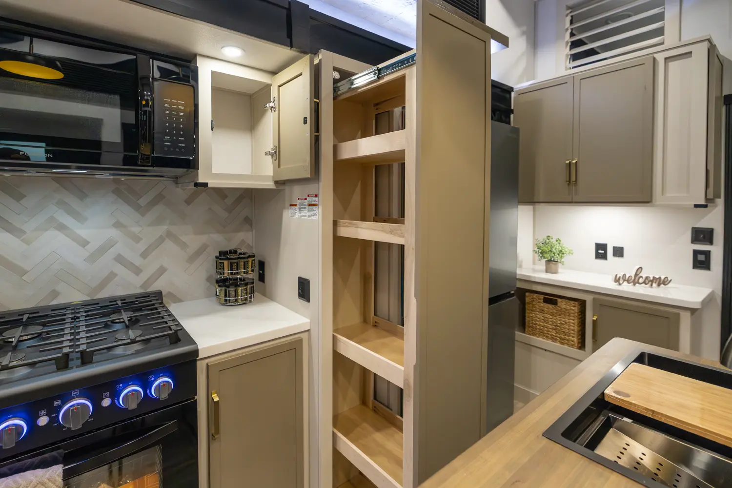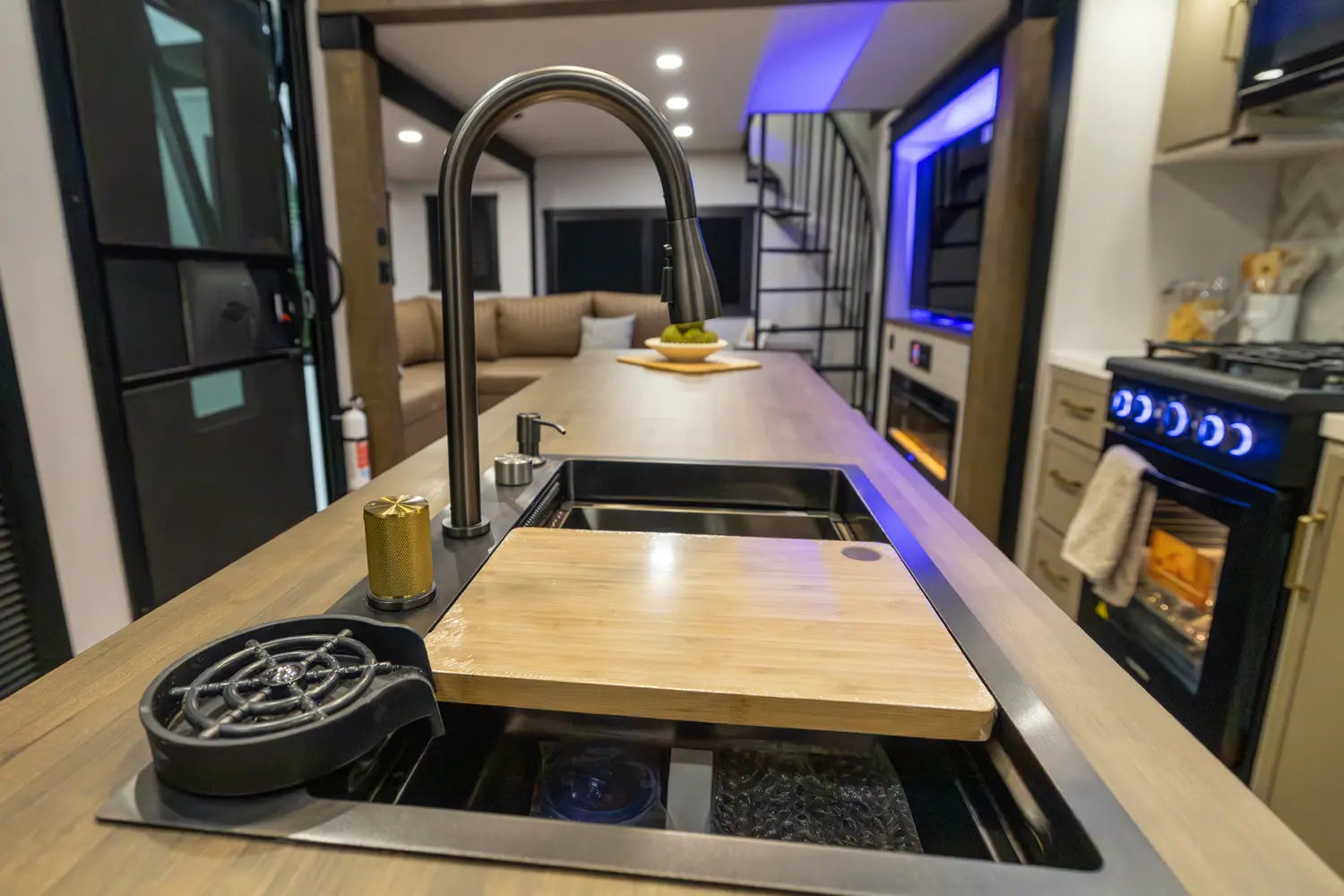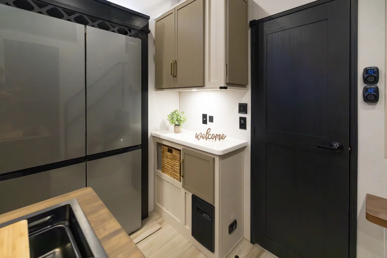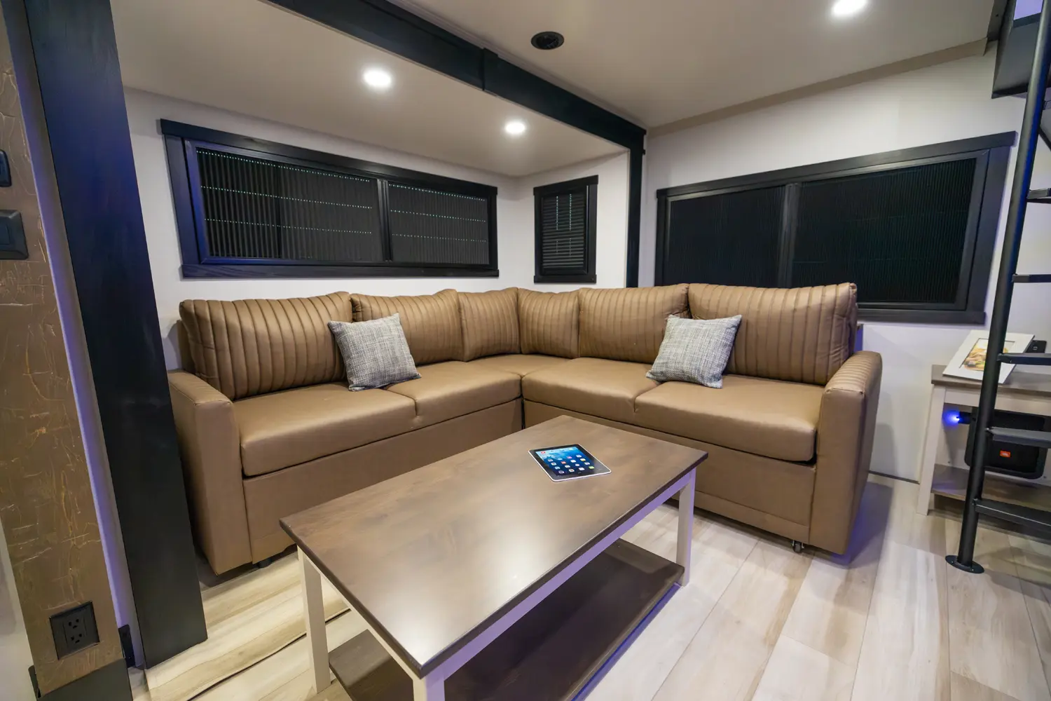 The ROOST43 provides a new segment to the RV market with a combination of a destination trailer in fifth wheel form. This creates the opportunity to move from locations easier than bumper pulling and provides the most square footage in this segment of RVs (530 Sq.Ft. compared to 399 Sq.Ft.). The ROOST43 is feature packed with residential style kitchen appliances, HUGE rear den, two lofts, bath and a half, laundry room, and an elegant interior design. The ROOST43 is will set a new era for RVing.