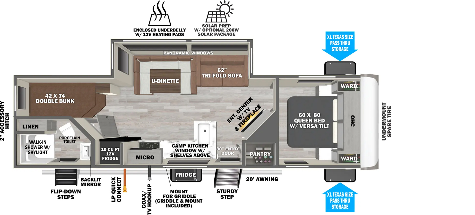 With everything from the look of the professionally designed fabrics to the attention to detail in the well crafted crown molding slide out fascia, Wildwood Heritage Glen has left nothing out when it comes to quality.