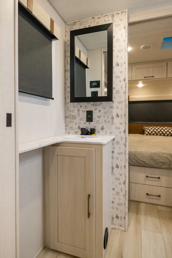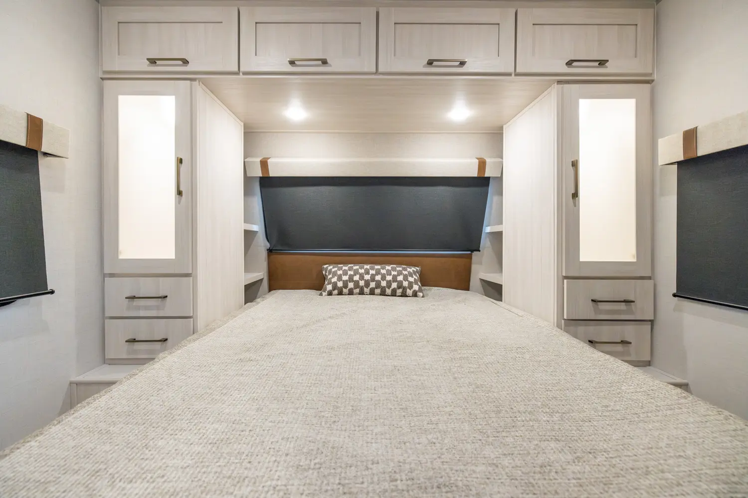 Spacious and family-friendly, this travel trailer features a front queen bedroom with dual wardrobes, central kitchen with large fridge and air fryer microwave, booth dinette slide-out, rear double bunks, and walk-through bath. Built for extended-season use with heated enclosed underbelly, radiant foil insulation, 12V tank pads, 21' power awning, outdoor griddle, and pass-through storage, ready for any adventure.