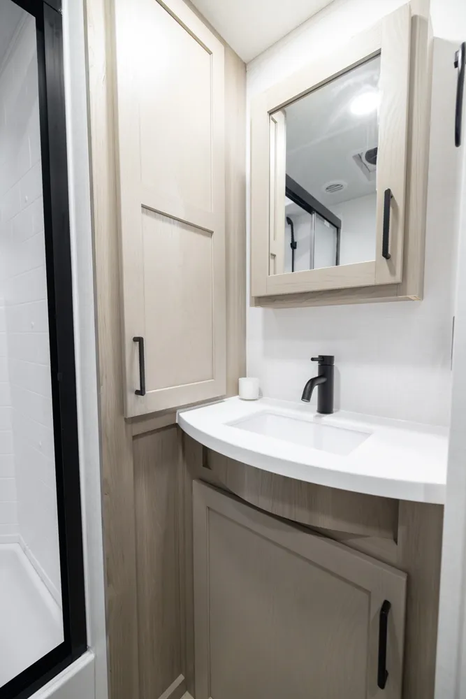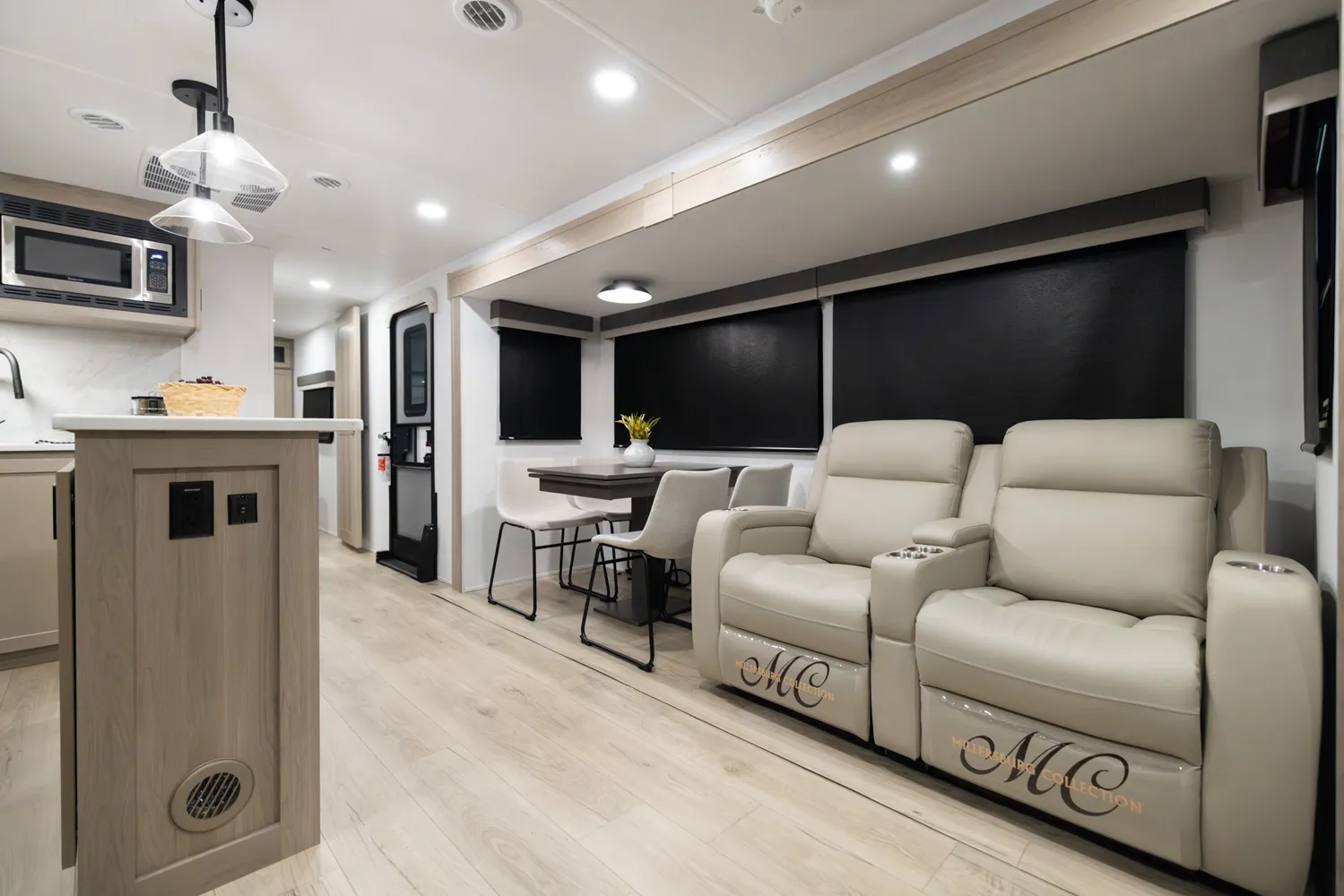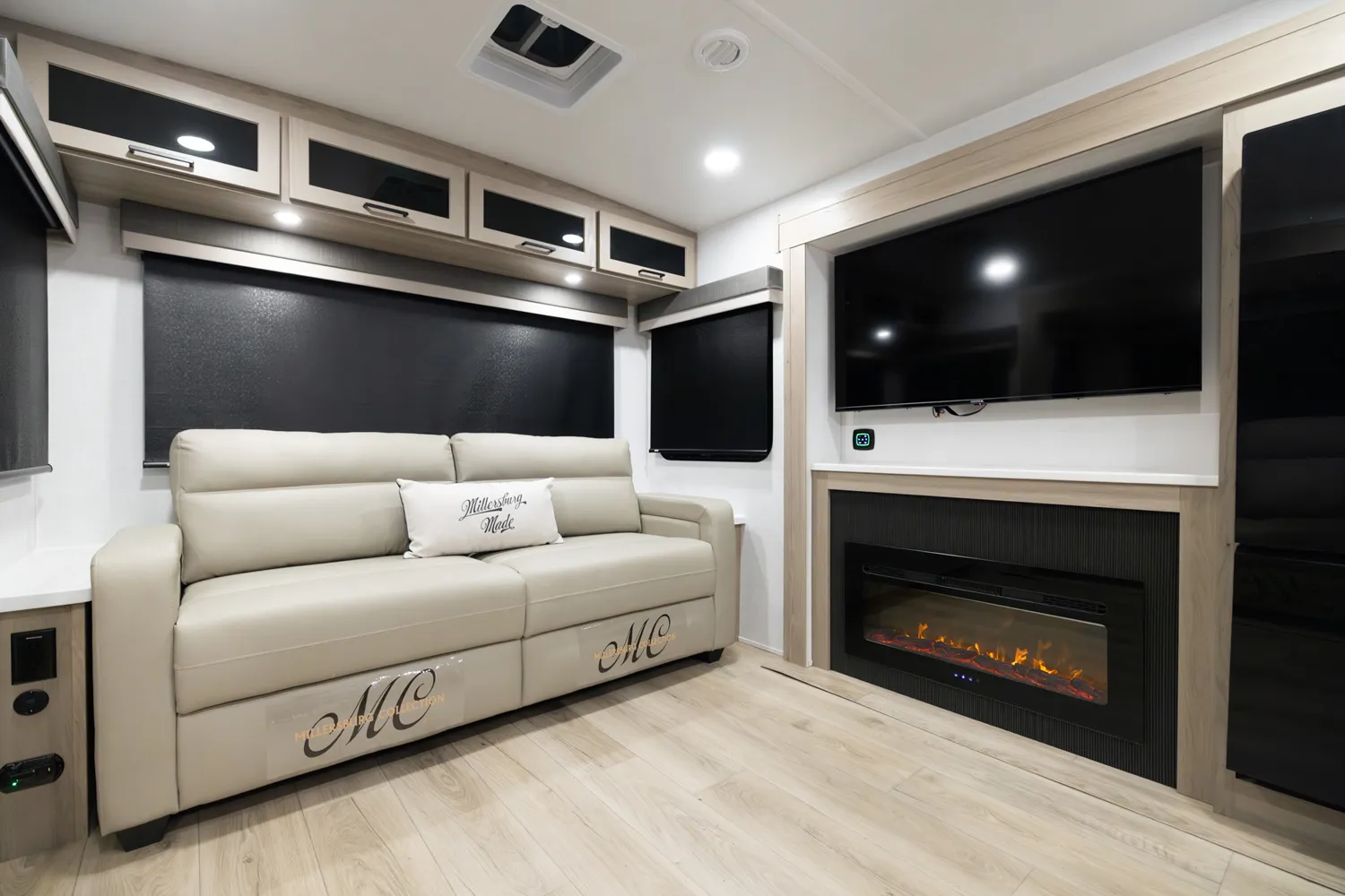 • Platinum Package: Auto Leveling, Frameless Windows, 1800W Inverter, MORryde Strut Assist Entry Step, Dual 30 LP Tanks
