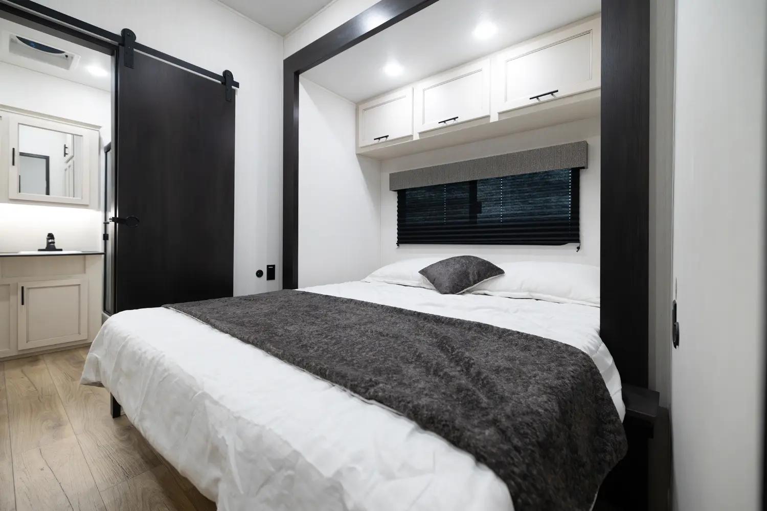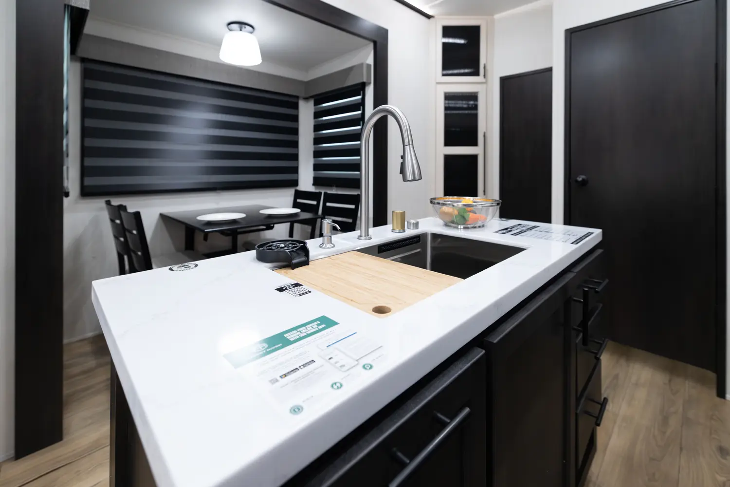 Discover the Forest River Sabre 37FLH, a luxurious 5th wheel RV designed for entertaining! This stunning front living room layout is perfect for movie nights or extra sleeping space, featuring two tri-fold sleeper sofas. The private owner’s suite includes a spa-like full bathroom, while a convenient half-bath adds extra functionality. The chef-inspired kitchen boasts premium solid surface countertops, a 12-volt fridge, air fryer microwave, large oven, and handcrafted real wood cabinetry.