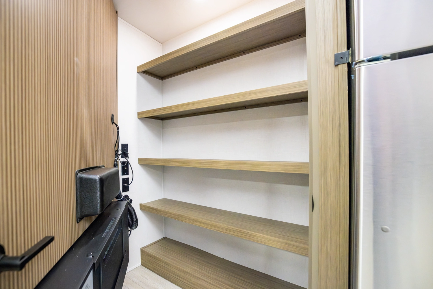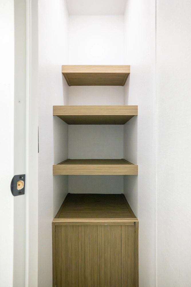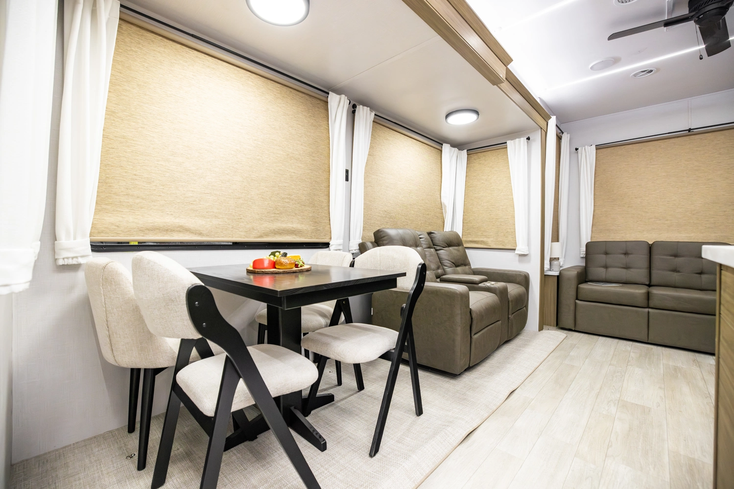The 40RLB is an open floorplan that maximizes space for a residential cottage look and feel. The large king bedroom provides plenty of storage and washer/dryer hookup. The bathroom offers a walk-in shower with built-in seat, skylight, and linen cabinets. The island kitchen provides residential appliances and plenty of room for all the cooking essentials. Don’t forget the awesome view out the panoramic windows.