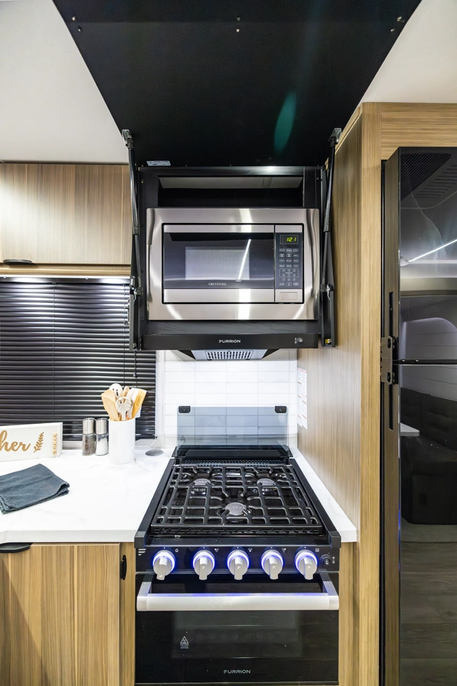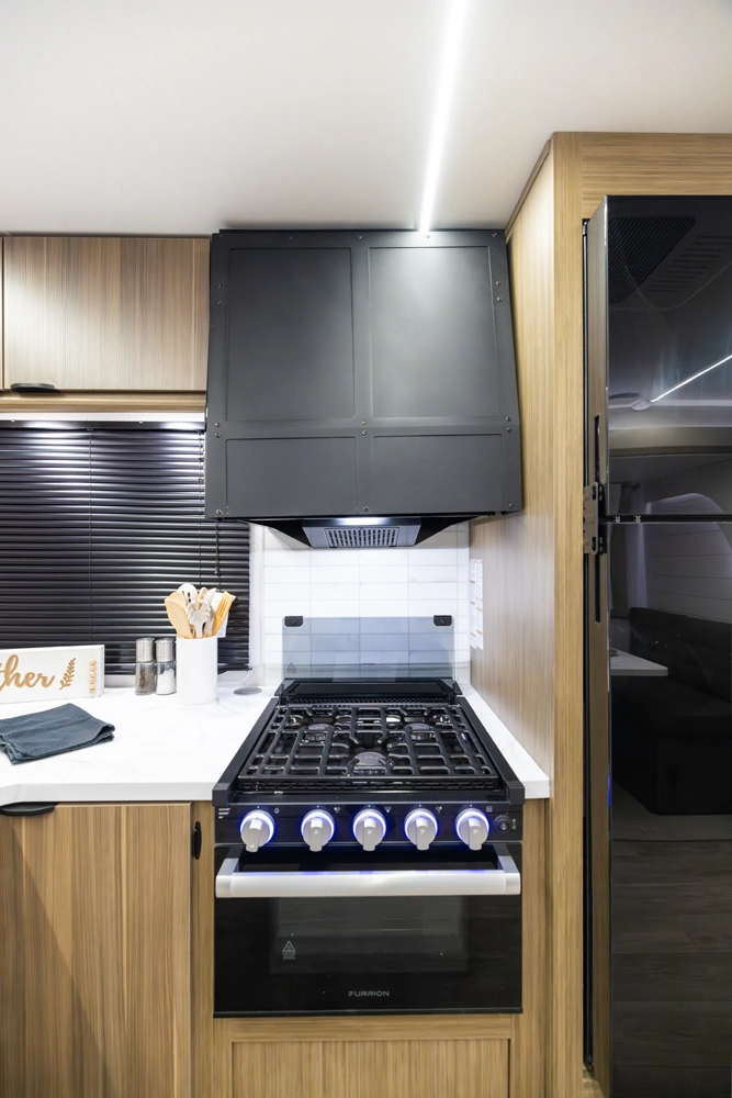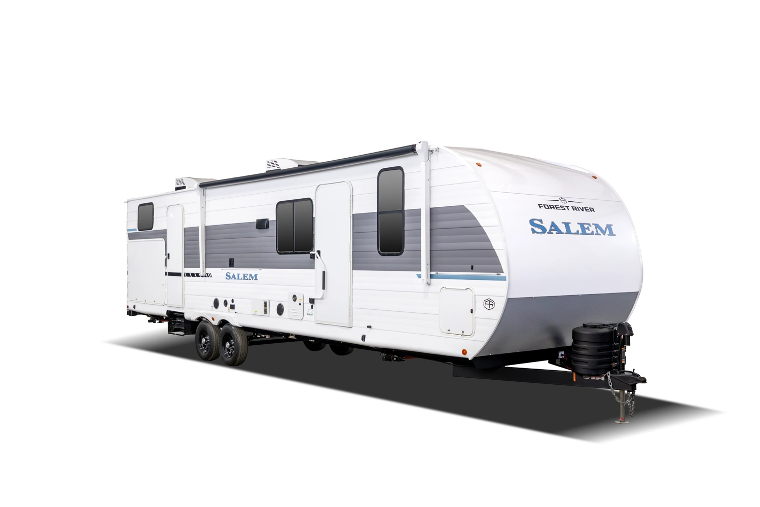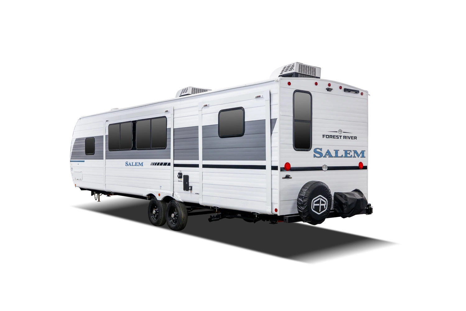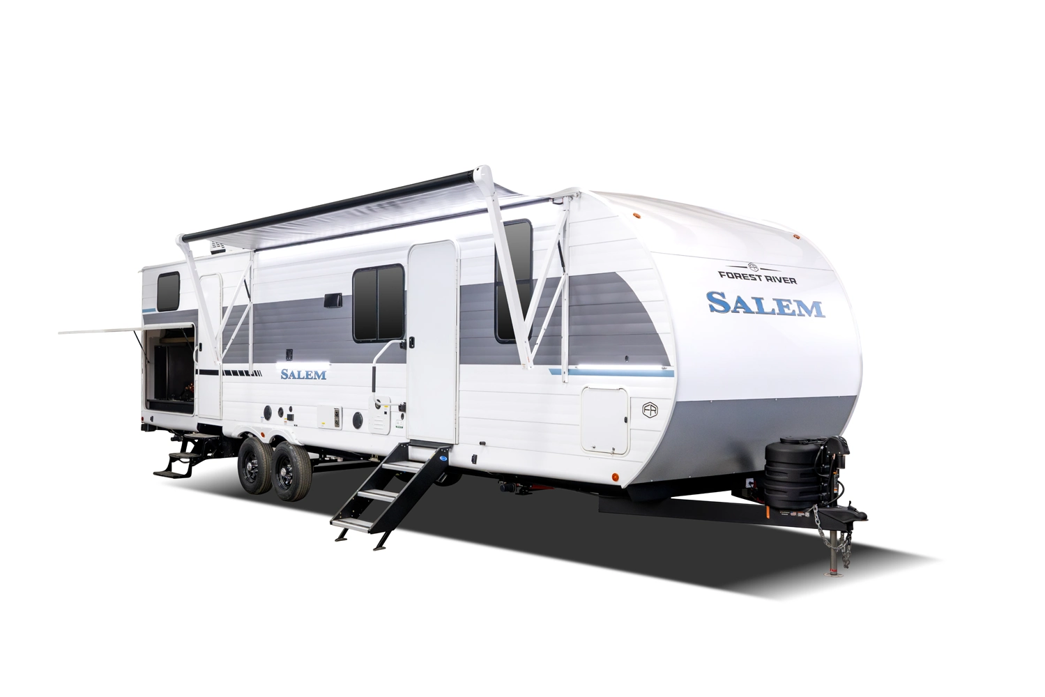 The 32BHDS is the ultimate bunkhouse, with two total slide outs and an outside kitchen. This well-equipped travel trailer features oversized panoramic windows, the ever-popular U-dinette, which you can customize with the adjacent Versa-Lounge. The kitchen includes a 11 CU. FT. refrigerator and stovetop with oven and LED accents, plus cabinets for all your cooking essentials!