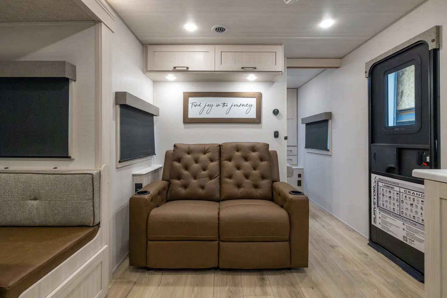 Sleeps up to 4-6. Need tow vehicle rated at 5800 lbs. or more. This self contained Destination camper is very intelligently laid out and spacious, featuring; a deep dinette slide-out, with jackknife sofa or optional Exclusive TSS tucked perfectly on the bedroom privacy wall. The washroom has tremendous storage as does the walk in pantry! And if outside is calling, the 252RBLE has our outside cookhouse kitchen, second to none!