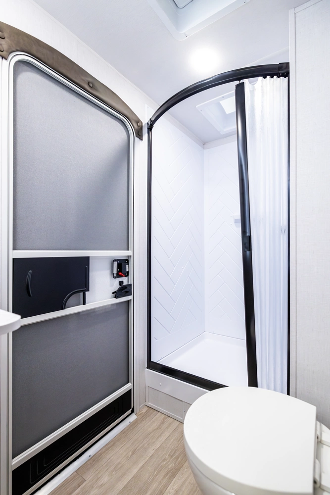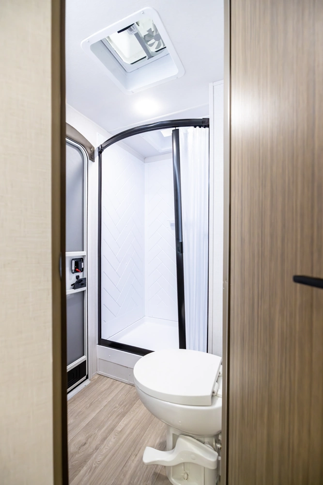 The 26DBUD is the perfect family travel trailer, with double bunks at one end and a queen bedroom at the other. You also get a fireplace (heater), full kitchen with glass-fronted cabinetry and large pantry, a U-dinette, and the customizable Versa-Lounge with Stow N Go Storage.
